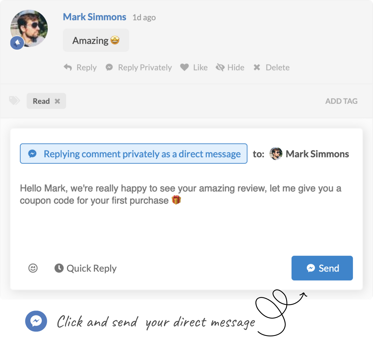 Easily respond to all social media comments, messages, mentions, and reviews in a unified inbox. Provide great customer service and boost sales on social channels.